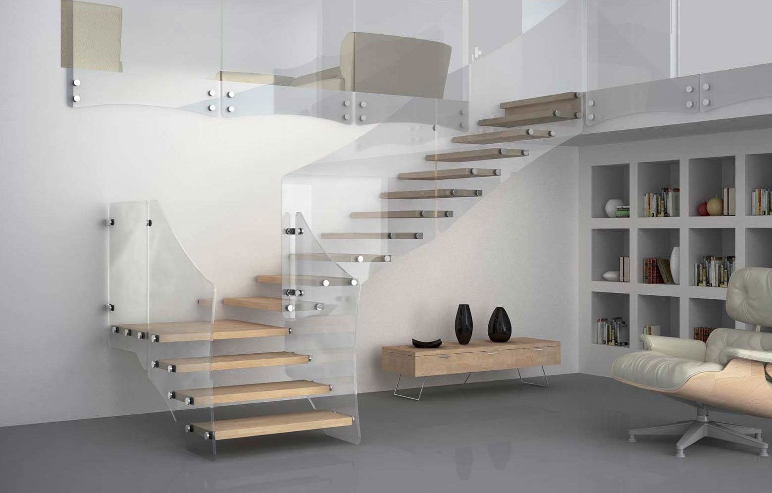 - Non –slip treads made of stratified and tempered Glass